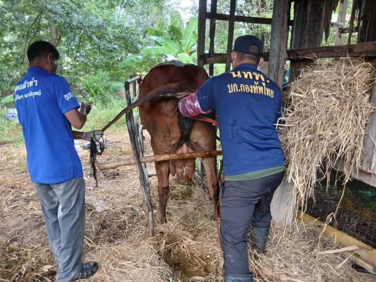 กิจกรรมนักรบสีน้ำเงิน เมื่อวันที่ 22 พ.ย. 68 บก.ทท. (นทพ.) โดย นพค.25 สนภ.2 นทพ. จัดกำลังพลชุดผสมเทียมของหน่วยฯ ให้บริการผสมเทียมโค ด้วยน้ำเชื้อพันธุ์บราห์มันแดง รวมทั้งปฏิบัติการด้านปศุสัตว์ ให้แก่ประชาชนในพื้นที่ อ.เมืองหนองคาย จำนวน 1 ราย ณ พื้นที่ปฏิบัติงาน ต.บ้านเดื่อ อ.เมืองหนองคาย จว.น.ค.22 พฤศจิกายน 2025