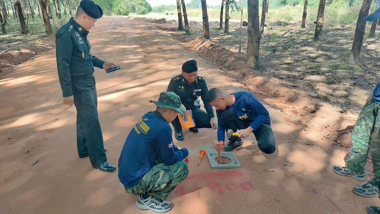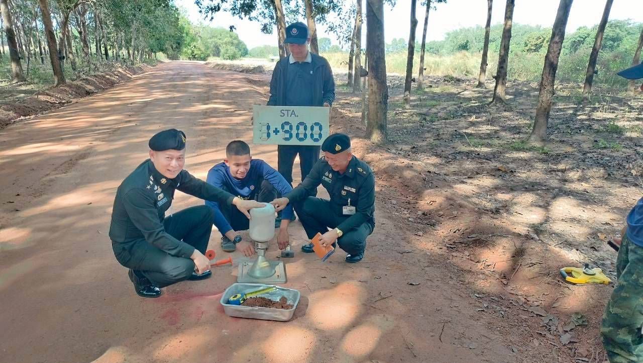 เมื่อวันที่ 21 พ.ย. 68 บก.ทท. (นทพ.) โดย นพค.25 สนภ.2 นทพ. จัดกำลังพลหน่วยฯ ที่ได้รับการแต่งตั้งเป็นคณะกรรมการตรวจรับงานเอง ดำเนินการทดสอบหาความหนาแน่นของดินในสนาม (Field Density Test) โดยตรวจสอบมิติงานให้เป็นไปตามมาตรฐาน กกช.บก.นทพ. ตามแผนงานโครงการประจำปีงบประมาณ พ.ศ. 2569 โครงการซ่อมปรับปรุงทางผิวจราจรลูกรัง กว้าง 5 ม. ระยะทาง 2.900 กม. เส้นทาง บ.ศูนย์กลาง ม.3 เพื่อให้ประชาชนได้ใช้เส้นทางได้สะดวกรวดเร็ว ผลการดำเนินงานแล้วเสร็จ มีประชาชนผู้ที่ได้รับประโยชน์ จำนวน 1,170 คน 367 ครัวเรือน ณ พื้นที่ปฏิบัติงาน บ.ศูนย์กลาง ม.3 ต.ด่านศรีสุข อ.โพธิ์ตาก จว.น.ค.