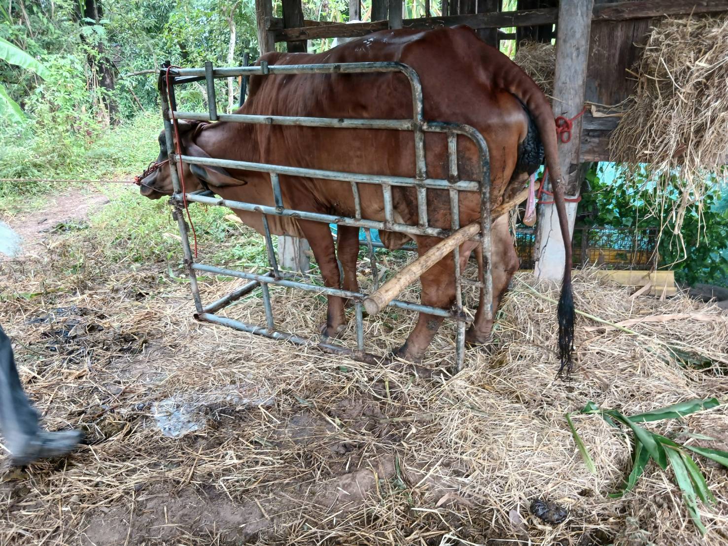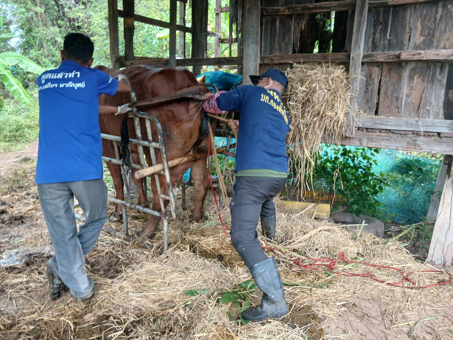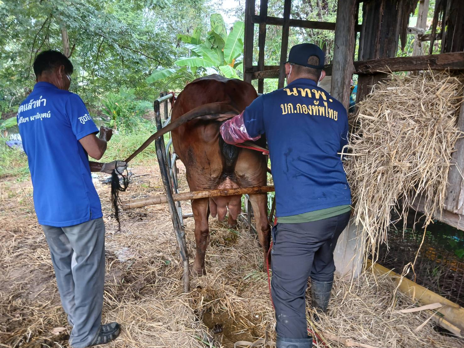 เมื่อวันที่ 22 พ.ย. 68 บก.ทท. (นทพ.) โดย นพค.25 สนภ.2 นทพ. จัดกำลังพลชุดผสมเทียมของหน่วยฯ ให้บริการผสมเทียมโค ด้วยน้ำเชื้อพันธุ์บราห์มันแดง รวมทั้งปฏิบัติการด้านปศุสัตว์ ให้แก่ประชาชนในพื้นที่ อ.เมืองหนองคาย จำนวน 1 ราย ณ พื้นที่ปฏิบัติงาน ต.บ้านเดื่อ อ.เมืองหนองคาย จว.น.ค.